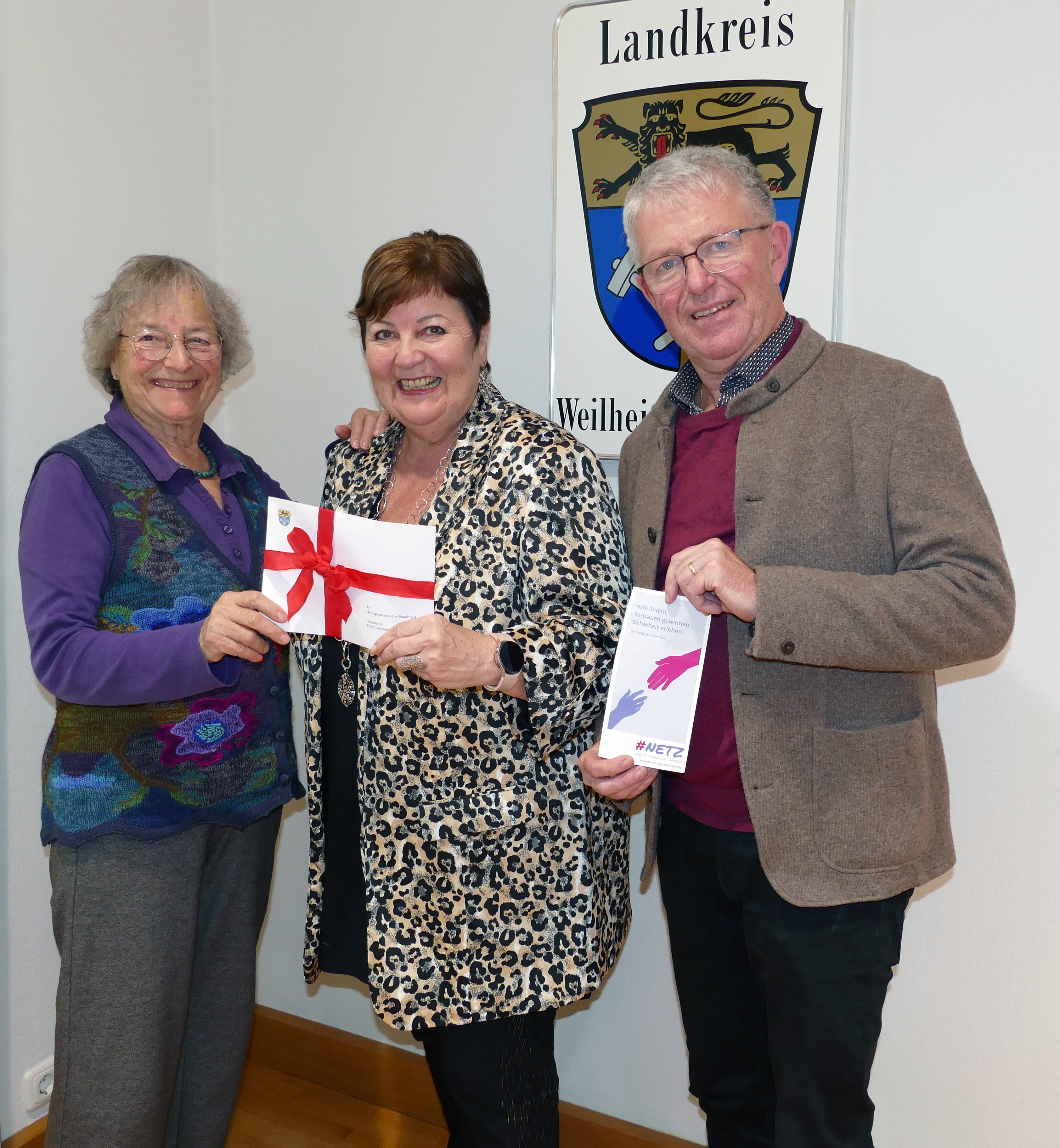 Den symbolischen Scheck nahmen im Landratsamt stellvertretend Dr. Rautgunde Lammerer, die 1. Vorsitzende des Trägervereins, sowie das Vorstandsmitglied Ingo Remesch entgegen. Landrätin Andrea Jochner-Weiß nutzte die Gelegenheit, um persönlich ihre Anerkennung für das große Engagement auszusprechen. „Weihnachtskarten sind schnell gelesen und oft ebenso schnell vergessen. Mit einer Spende können wir hingegen ganz konkret helfen und etwas Bleibendes bewirken“, betonte die Landrätin. „Das Netz gegen sexuelle Gewalt schließt eine wichtige Versorgungslücke im ländlichen Raum und gibt Betroffenen eine Stimme sowie einen geschützten Ort, an den sie sich wenden können.“