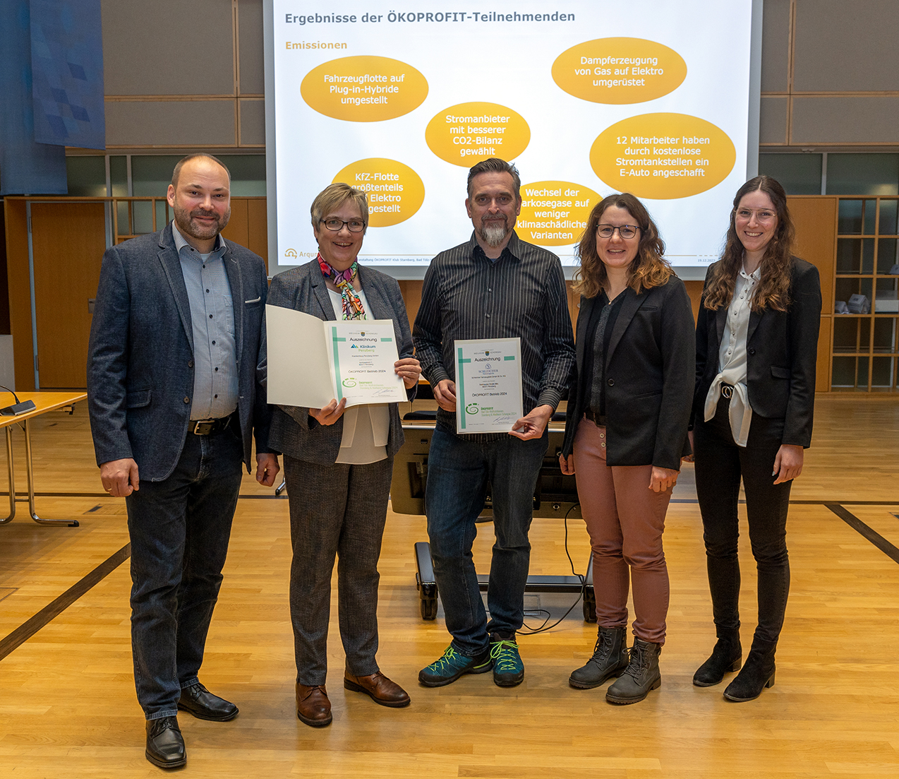 Betriebskosten senken, den Profit steigern und gleichzeitig den ökologischen Fußabdruck verringern: Dies sind keine Gegensätze, sondern die Ziele des ÖKOPROFIT-Projekts. Zehn Unternehmen aus den Landkreisen Starnberg, Bad Tölz-Wolfratshausen und Weilheim-Schongau erhielten dafür die Auszeichnung zum „ÖKOPROFIT-Betrieb 2024“, darunter auch zwei Unternehmen aus dem Landkreis Weilheim-Schongau. Bei der Abschlussveranstaltung der diesjährigen ÖKOPROFIT-Klub-Runde im Landratsamt Starnberg am Dienstag, den 11. Dezember 2024, wurden die Projektergebnisse vorgestellt. Dabei wurden den teilnehmenden Unternehmen die Auszeichnungsurkunden als ÖKOPROFIT-Betriebe 2024 überreicht.