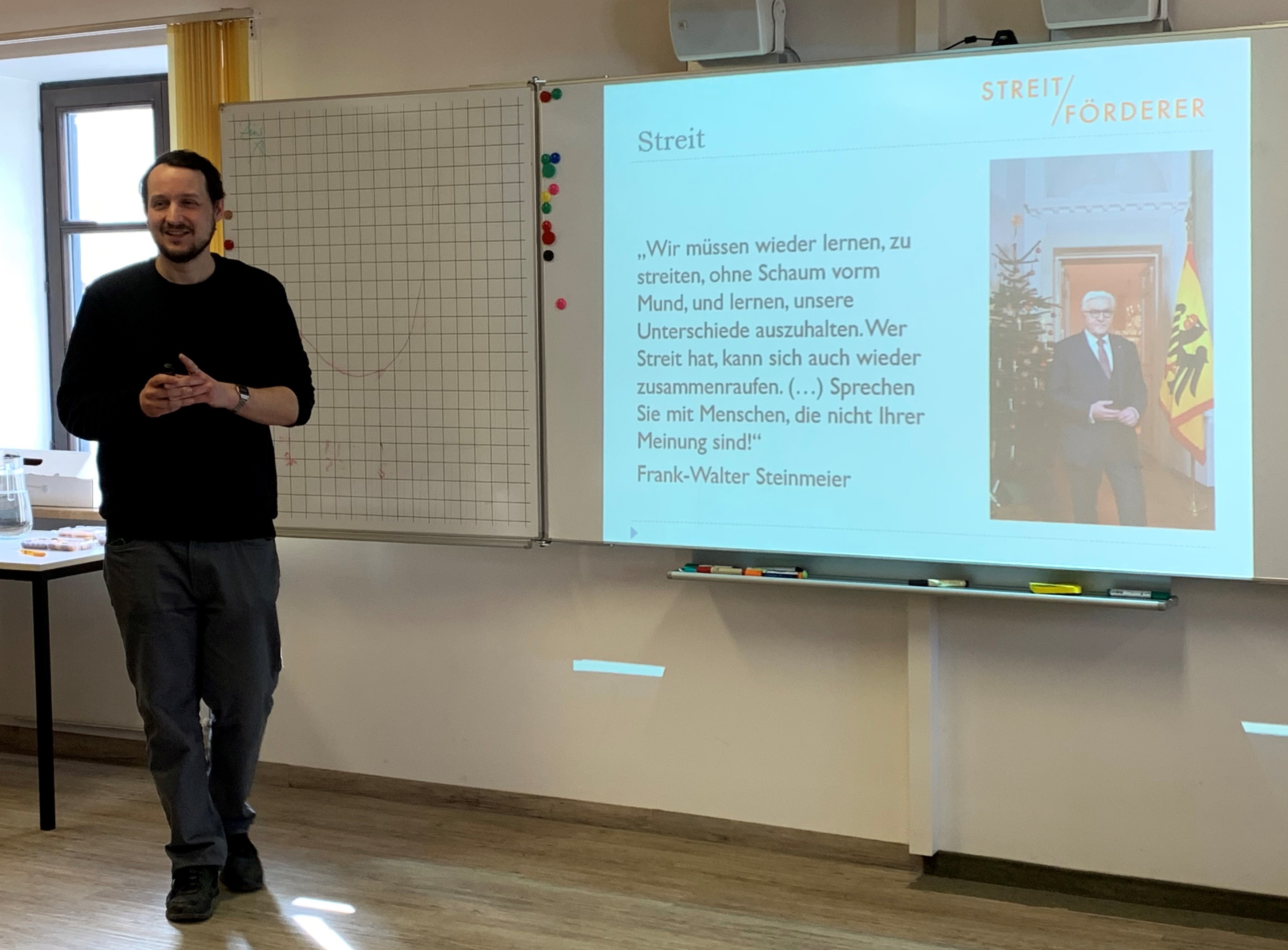 Dabei standen drei Säulen im Fokus: Haltung, Technik und Übung. Eine starke Haltung in der Diskussion bedeutet, die Werte des Gegenübers anzuerkennen und offen für andere Meinungen zu bleiben. Technisch hilft die einfache Faustregel, gezielte Nachfragen zu stellen – etwa bei der Aussage „Das wollten die so“ als konkretisierende Antwort „Wer genau wollte das so?“ So signalisiert man Interesse und Empathie, hört aufmerksamer zu und räumt Missverständnisse aus. Abschließend gilt: Übung macht den Meister – sie schult, besser und sicherer zu diskutieren. Bei allem Verständnis gibt es jedoch Äußerungen, denen man keinen Raum geben möchte. Hier wirkt eine klare Distanzierung: „Das sehe ich anders und gebe dem keine Plattform.“
